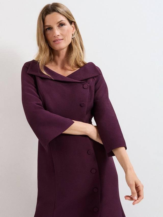 Это платье миди, выполненное в стиле смокинга, имеет удлиненный V-образный вырез, подчеркивающий зону декольте. Изящная текстура и соответствующие пуговицы добавляют изысканности и создают вневременной образ для торжественных случаев, который вы будете носить долгие годы.