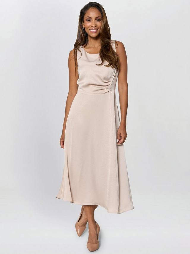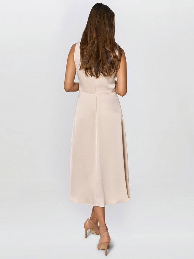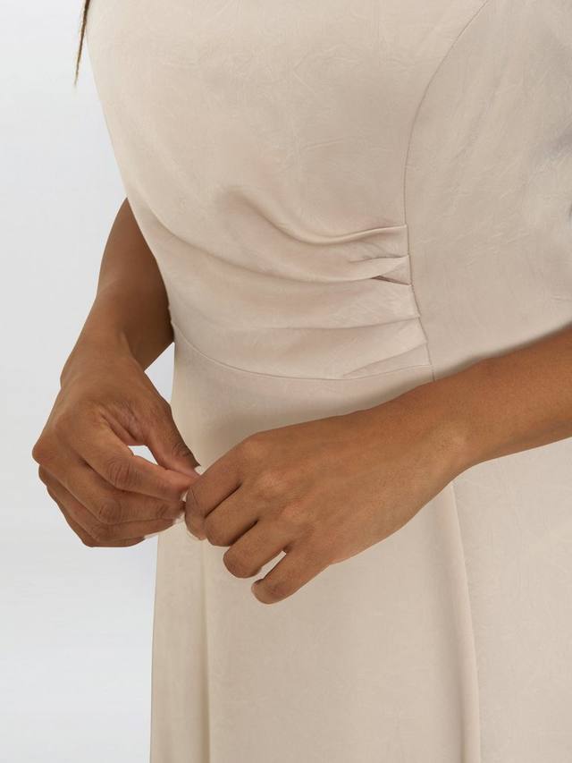 Великолепное платье Sandy кремового оттенка с мягким округлым вырезом и безрукавкой мягко облегает фигуру, переходя в изящную юбку А-силуэта. Легкое и универсальное, оно идеально подходит для дневных торжеств, садовых вечеринок или любых летних мероприятий.