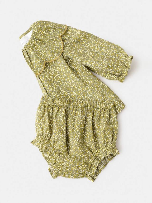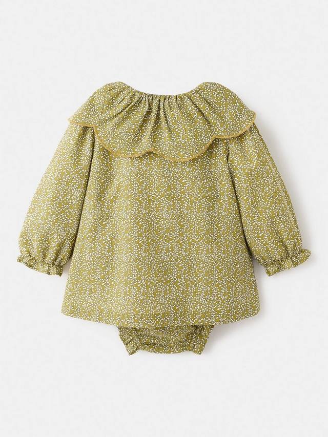 Это мини-платье А-силуэта с принтом в виде листьев и длинными рукавами выполнено из мягкого хлопка для комфортной носки в течение всего дня. Идеально подходит для повседневных приключений и игр.