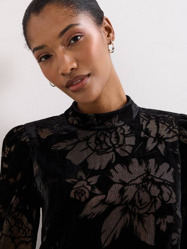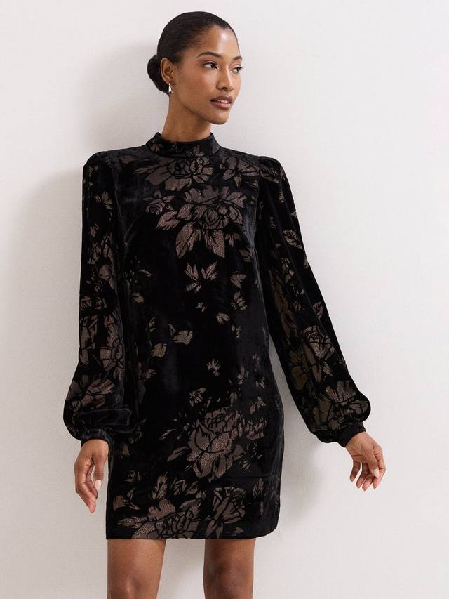Силуэт Proof a Shift актуален как никогда. Это мини-платье с длинными рукавами от Phase Eight отличается высоким воротом и очаровательным металлизированным цветочным принтом.