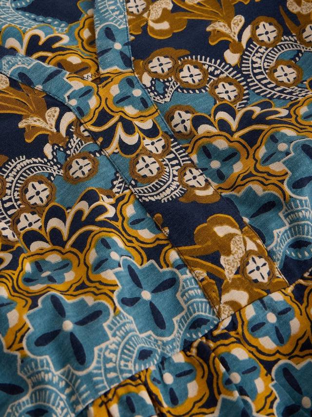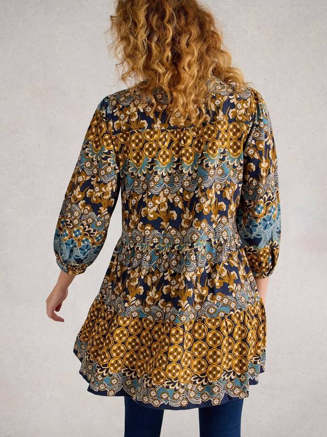 Удлинённая, свободная туника от White Stuff из лёгкого и дышащего хлопка. V-образный вырез, рукава три четверти и абстрактный геометрический узор.