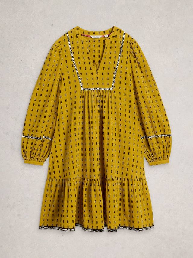 Это лёгкое и мягкое платье-туника длиной до колена украшено игривой вышивкой и V-образным вырезом, подчеркивающим фигуру. Длинные рукава обеспечивают комфорт, а многоярусный крой обеспечивает свободу движений. Идеально подходит для дней, которые заслуживают немного больше яркости.