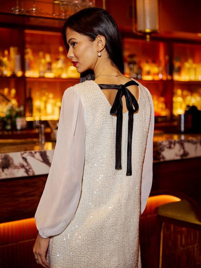 Ожидайте комфорта и комплиментов. Это мини-платье с длинными рукавами от Yumi дополнено V-образным вырезом и однотонной расцветкой, которую можно комбинировать.