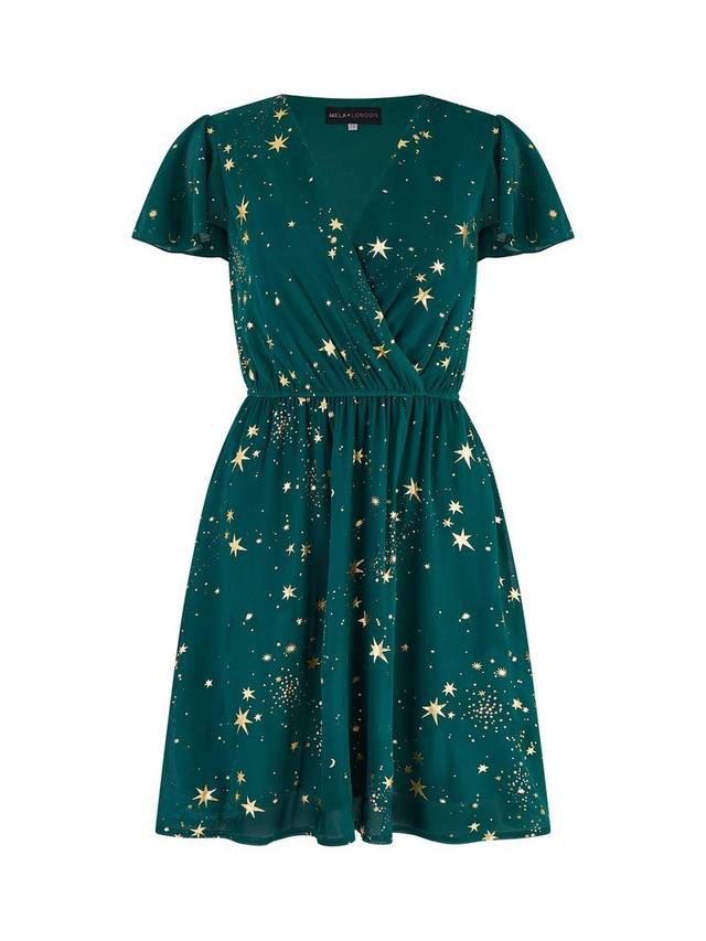 Раскройте свою внутреннюю небесную сущность в этом божественном платье-футляре от Yumi. Благодаря сплошному принту в виде звезд и луны, выполненному из фольги, вы будете блистать на любом мероприятии в этом сезоне. Простой силуэт с вырезом-запахом невероятно подчеркивает фигуру и удобен в носке. Дополните образ золотыми аксессуарами.