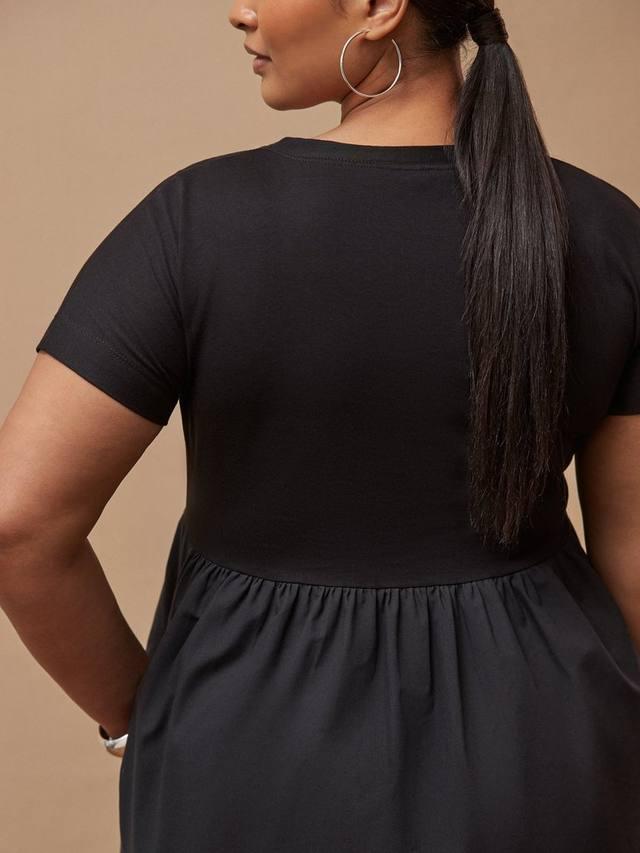 Это трикотажное платье миди с непринужденным кроем футболки, мягкой хлопковой смесью и V-образным вырезом создано для того, чтобы сопровождать вас, куда бы ни повел вас день. Лёгкое, удобное и продуманное до мелочей.