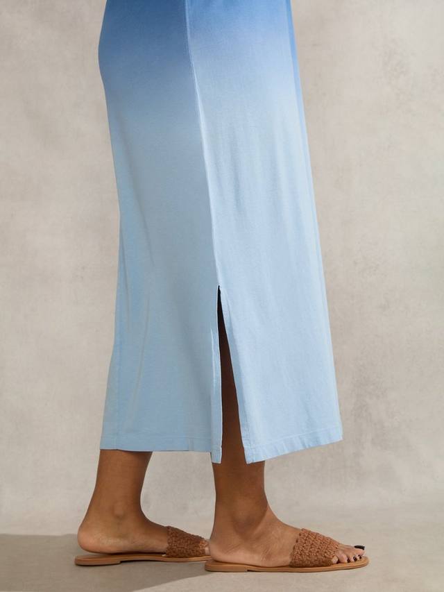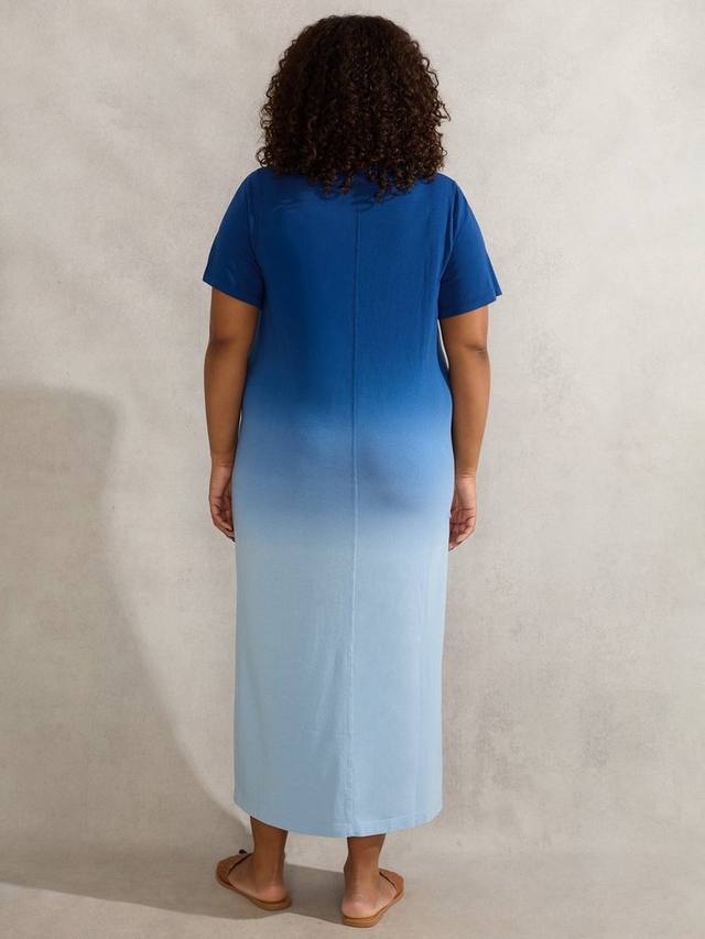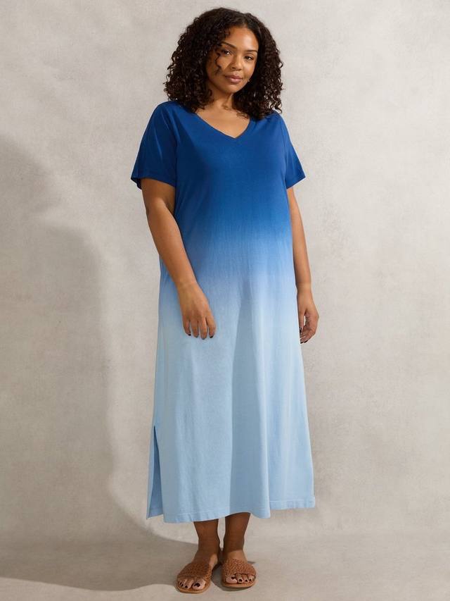 Это платье с эффектным омбре сшито из очень мягкой смеси модала и хлопка, что делает его невероятно комфортным в носке. Оно имеет привлекательный круглый вырез горловины, а короткие рукава с разрезами по бокам создают великолепный силуэт. Платье легко надевается через голову и отлично сочетается с кроссовками для создания повседневного образа или ботинками для создания нарядного образа.