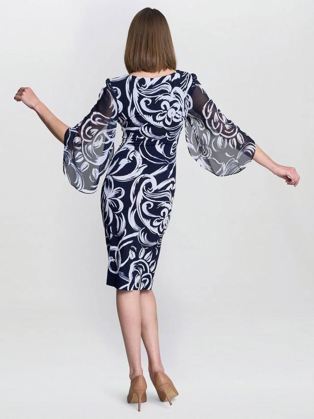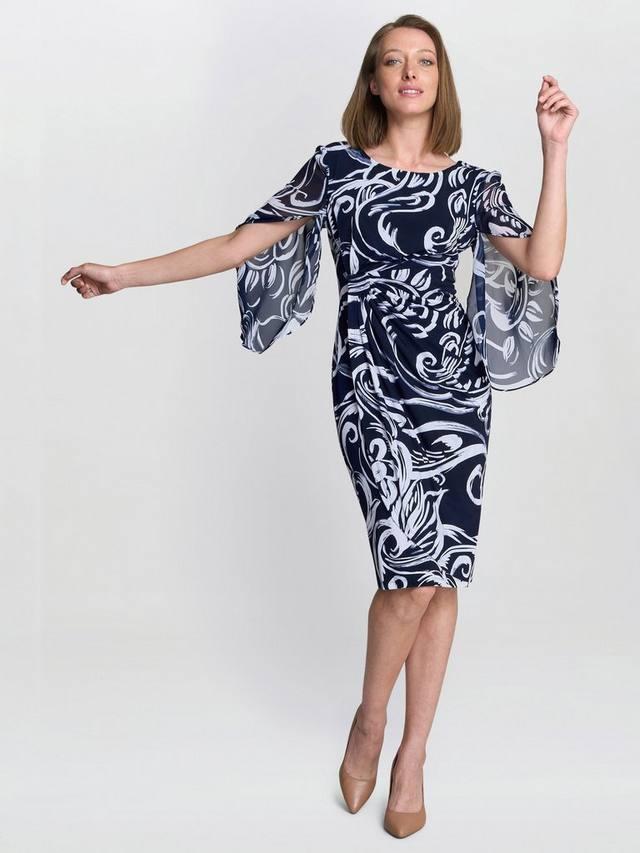 Ощутите непринужденную изысканность с платьем Iga — современной классикой, которая подчеркнет любую фигуру. Это платье длиной до колена с абстрактным принтом добавит элегантности любому случаю. Платье из мягкого эластичного материала присборено по бокам на талии, создавая облегающий силуэт.