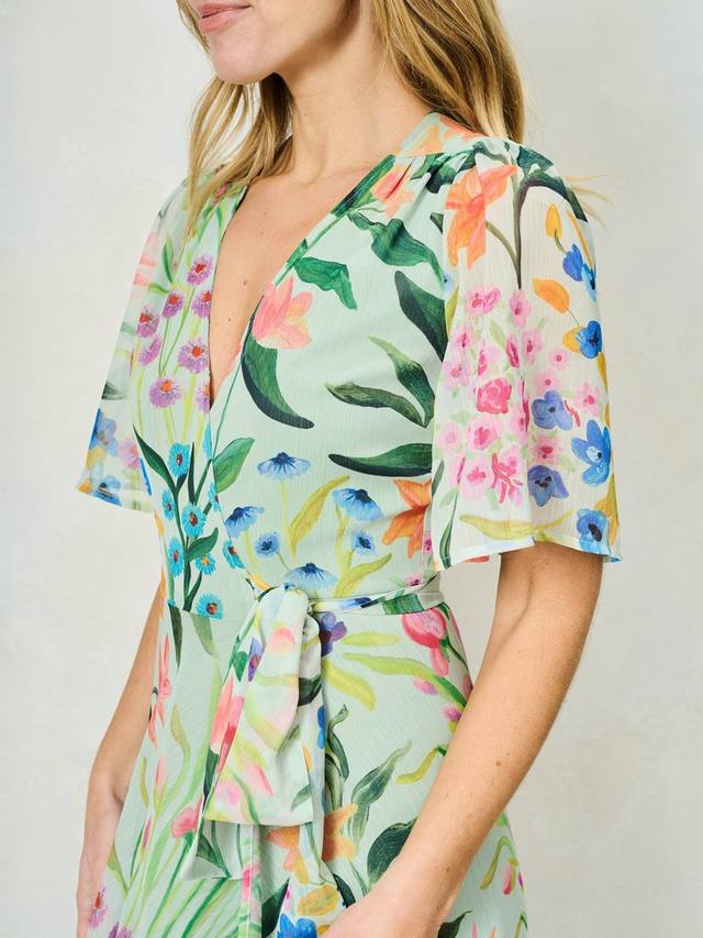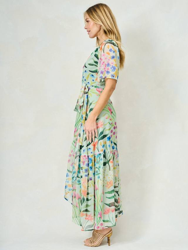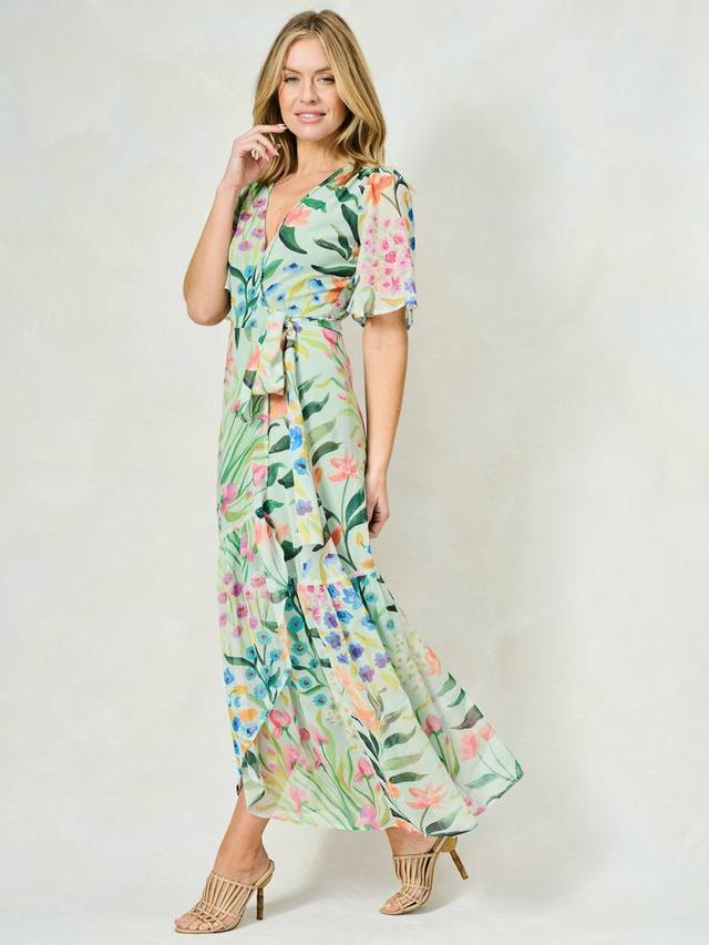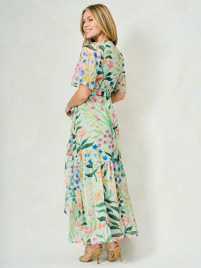 Ощутите фирменный почерк принта Hope & Ivy и классический силуэт в этом дизайне. Платье-халат Bonnie, выполненное из мягкого шифона, длиной макси, излучает романтичный, воздушный образ, идеально подходящий для особых случаев. Нижняя часть украшена вручную нарисованным цветочным принтом, создающим весеннее настроение. Женственные рукава-крылышки и регулируемый запах спереди на завязках обеспечивают обтекаемый силуэт, который обязательно привлечет внимание.