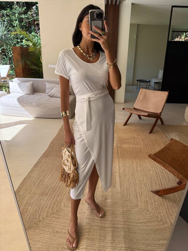 Самый продаваемый силуэт Never Fully Dressed из яшмы в сочетании с классической футболкой создаёт повседневный образ. Регулируемая застёжка-завязка позволяет сделать его максимально сексуальным или полностью закрытым.