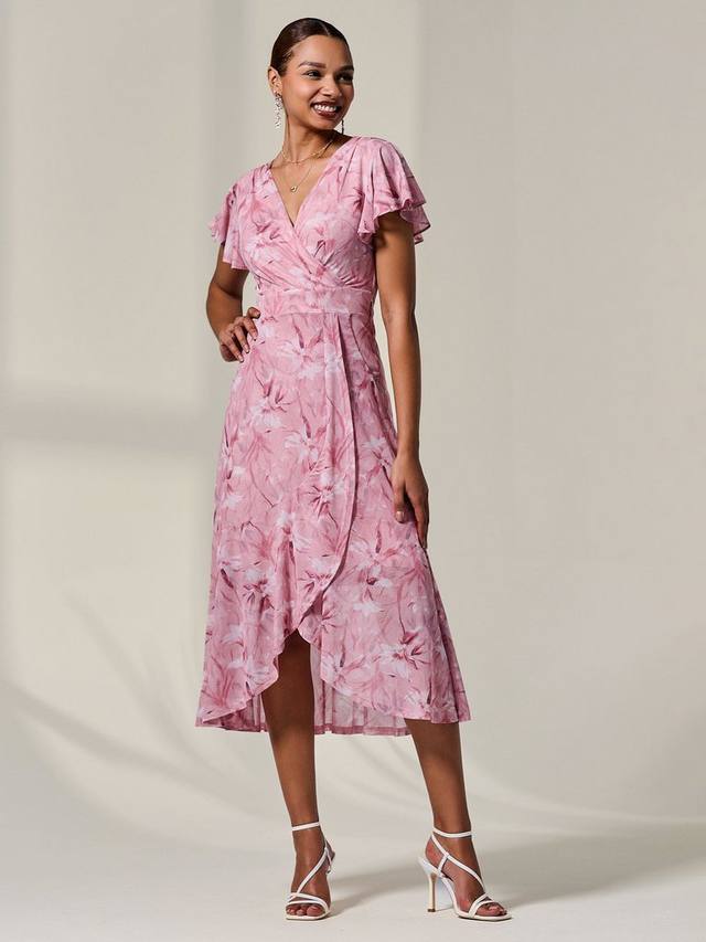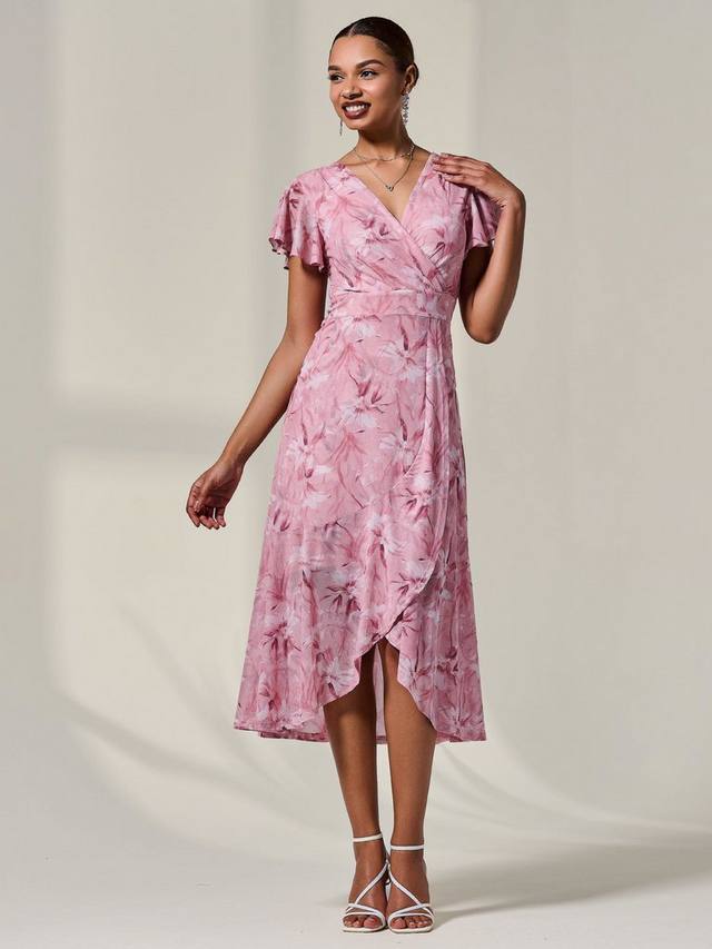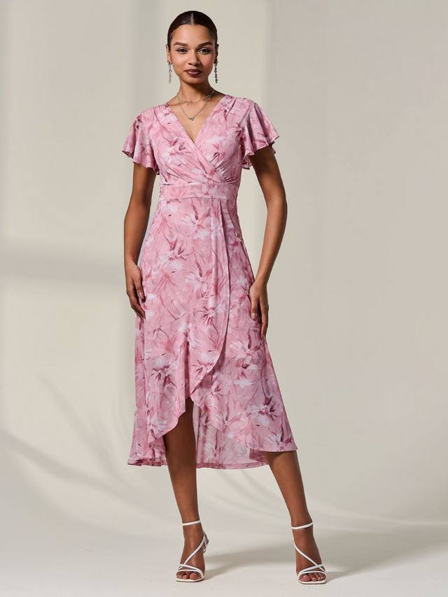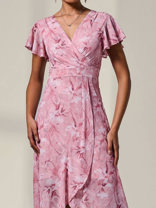 Платье Petite Wrap Midaxy от Jolie Moi с изящными короткими рукавами-ангелочками и привлекательным V-образным вырезом излучает непреходящую элегантность. Мягкая воздушная сетчатая ткань с причудливым розовым цветочным принтом идеальной длины с юбкой-облегающим эффектом и асимметричным оборчатым подолом. V-образный вырез дополнен широким поясом, который выгодно подчеркивает фигуру, делая это платье идеальным для любого летнего случая. Это платье также имеет V-образный вырез сзади, переходящий в незаметную молнию по центру сзади, а также имеет карманы по бокам спереди.