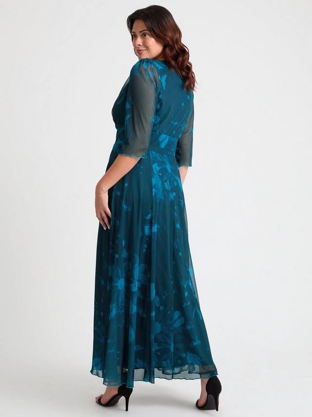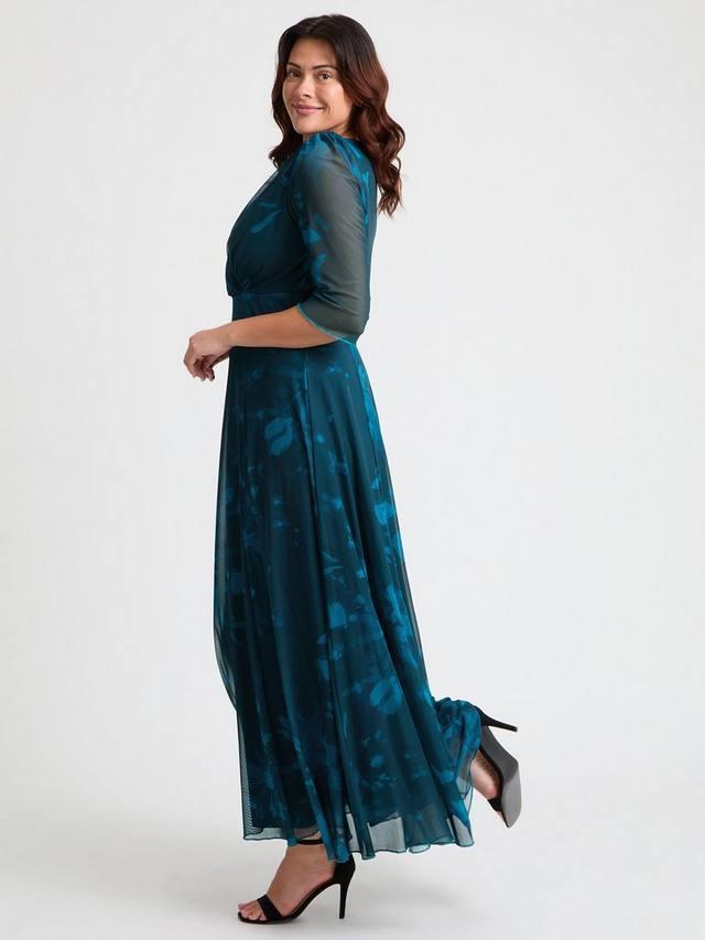 Потрясающее макси-платье с принтом. Это поистине красивое платье с принтом выполнено из мягкой и струящейся эластичной сетки POWERFIT. Лиф с запахом, поддерживаемый фирменной лентой Scarlett & Jo MagicBand, подчеркивает фигуру, а струящаяся юбка сужается к низу, создавая эффектный изгиб. Рукава 3/4 образуют элегантную линию плеч с небольшими съёмными подплечниками.