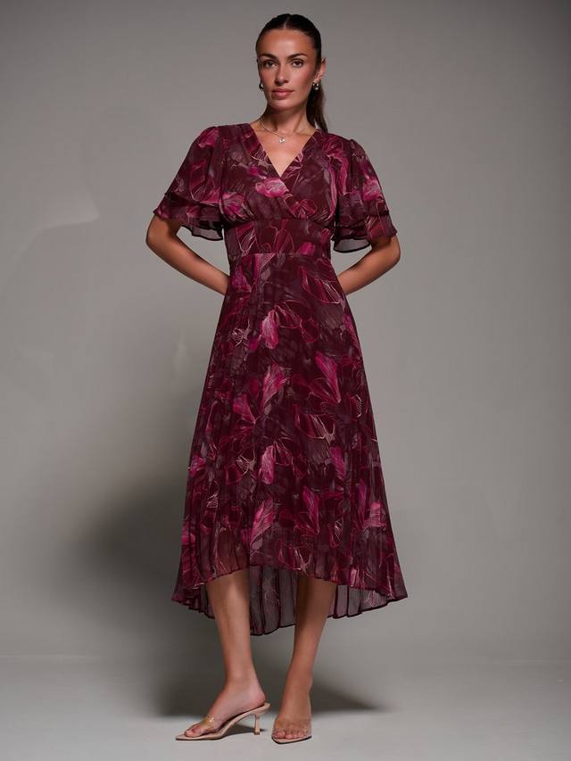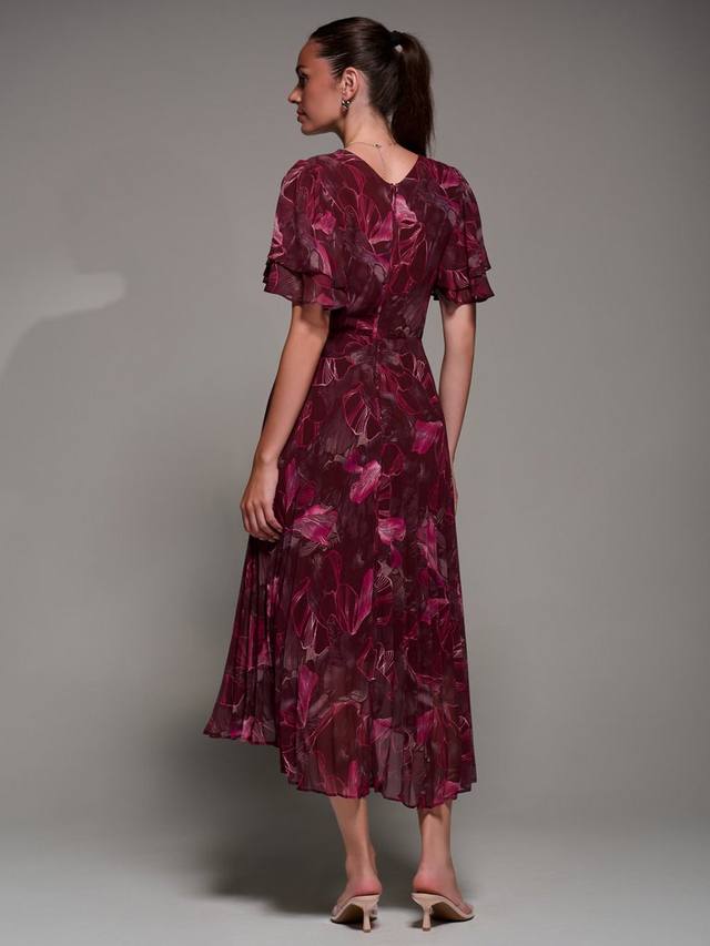 Платье Angel Sleeve имеет спереди запах, мягкий V-образный вырез и аккуратно потайную молнию сзади. Выразительные двухслойные рукава-ангелы придают грациозность движению и изящный объем, дополняя плиссированную юбку и подчеркнутый пояс.