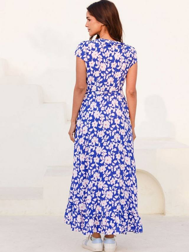 Это платье средней длины от Aspiga с подчеркнутым силуэтом с запахом выполнено из лёгкой вискозы. Благодаря V-образному вырезу и коротким рукавам, оно идеально подходит для женщин. Если вы любите цветочные принты, вам обязательно понравится эта модель.