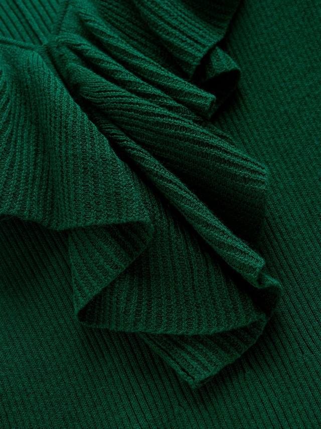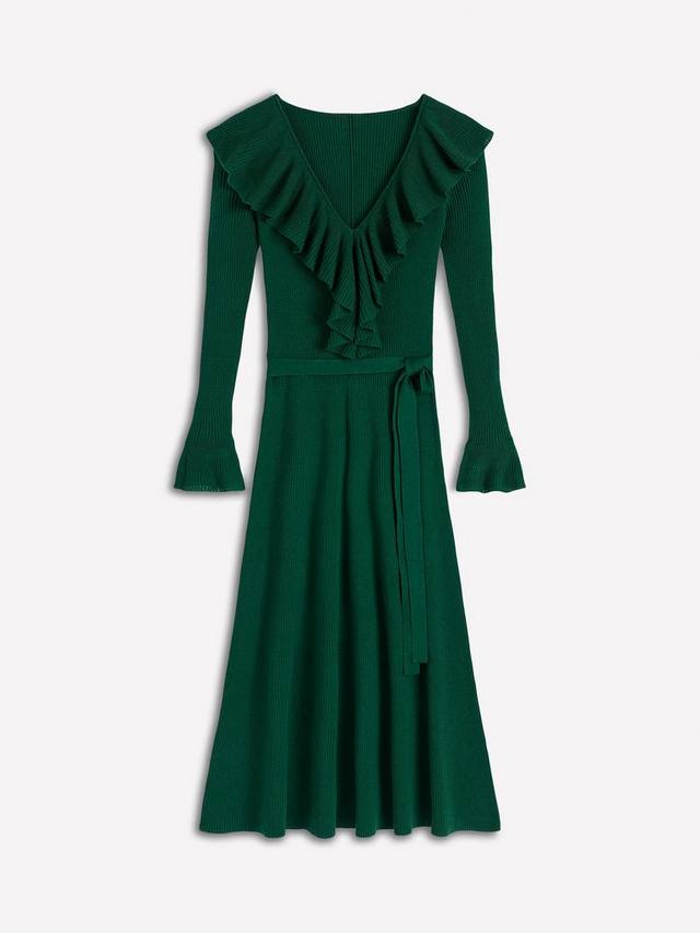 Это миди-платье в рубчик от Boden, выполненное из богатой шерстяной смеси, имеет V-образный вырез и длинные рукава.