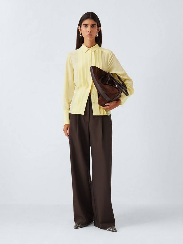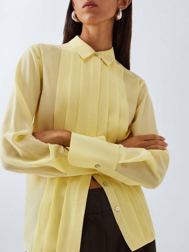 Блузка с длинными рукавами из роскошного шелка. Потайная планка с пуговицами акцентирует внимание на плиссировке спереди.