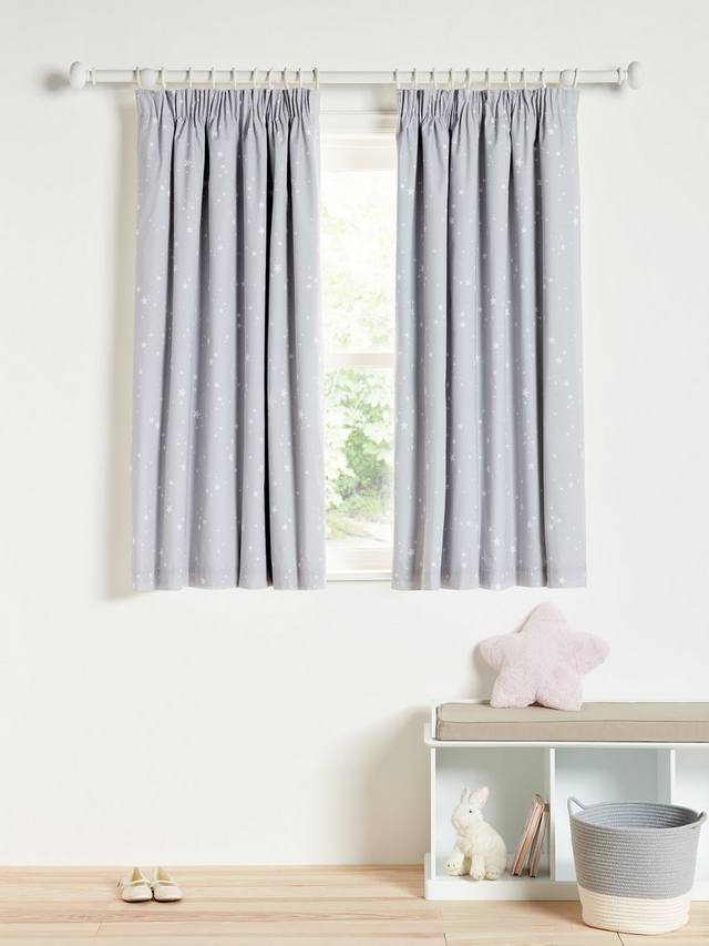 Эти детские шторы изготовлены из высококачественного хлопка и полиэстера с эффективным затемняющим покрытием и украшены ослепительным принтом в виде звёзд. Тонкие складки придают им элегантный вид, а узор легко впишется в интерьер спальни как маленьких детей, так и подростков. Затемняющее покрытие блокирует отвлекающие солнечные лучи или уличное освещение. Ширина соответствует ширине каждой шторы в паре.