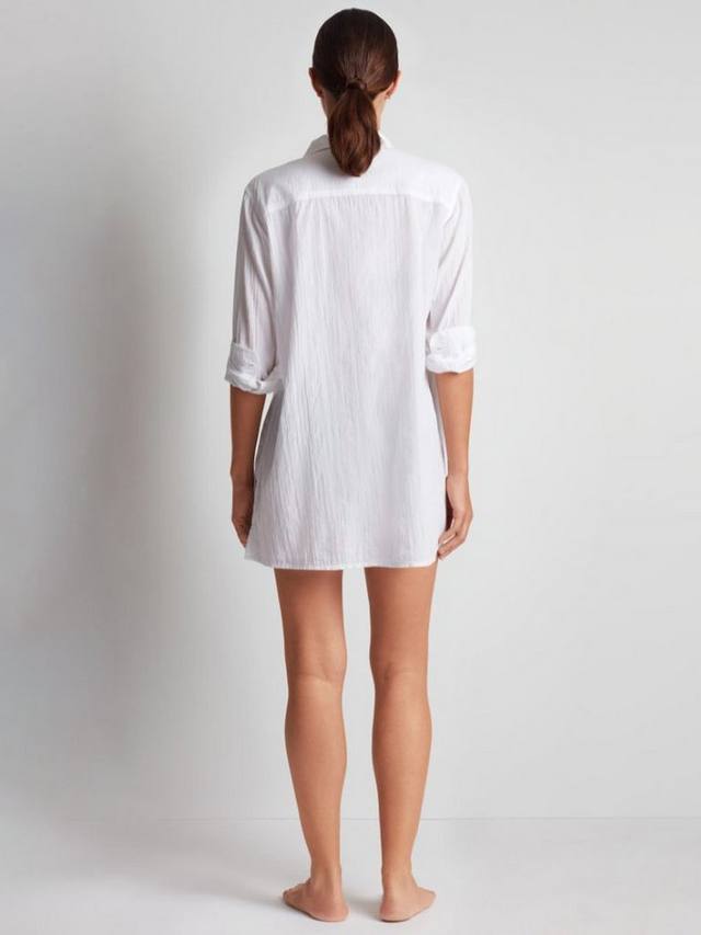 Классическая походная накидка из органического хлопка. С вышитым логотипом, нагрудным карманом и рукавами с отворотами. Лёгкий жатый хлопок идеально подходит для прохлады и отлично смотрится у бассейна.