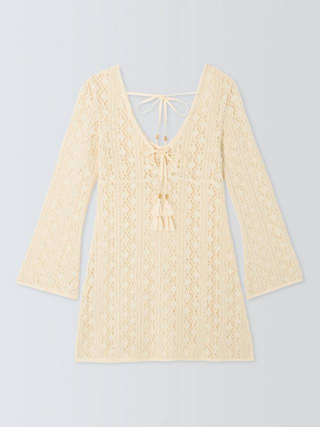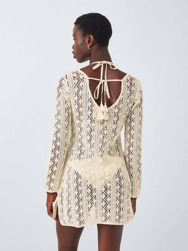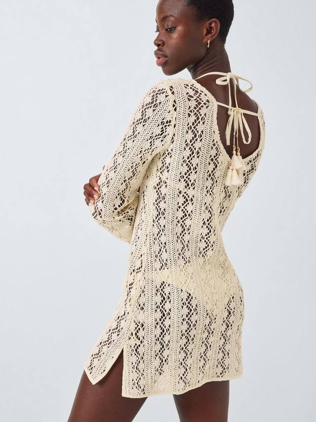 Платье-капри связано крючком и завязывается по центру спереди и сзади.