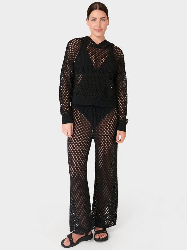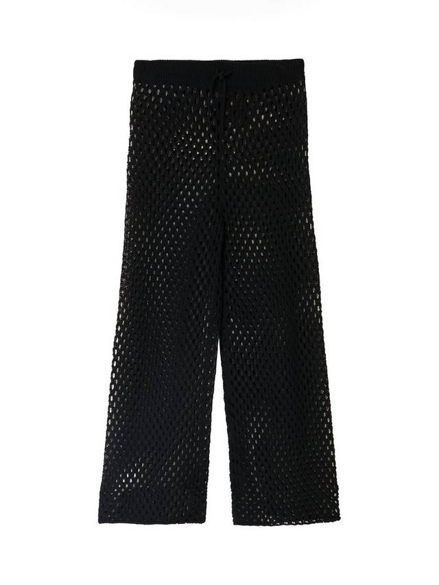 Летние брюки, предназначенные для ношения поверх купальника. Изготовлены из трикотажной пряжи с добавлением хлопка. Высокая талия и свободный силуэт. Регулируемый шнурок на талии.