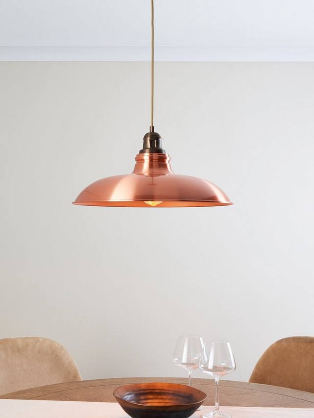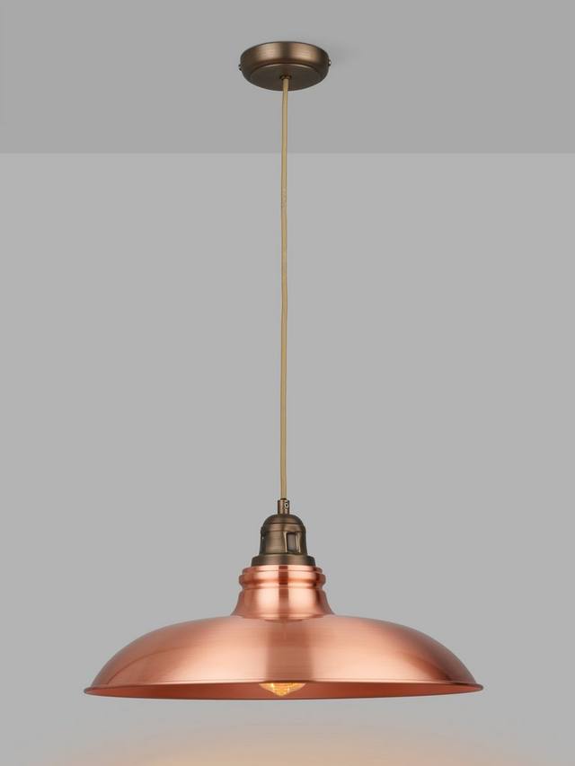 Подвесной потолочный светильник в индустриальном стиле с плавными линиями и широким абажуром в классическом стиле. Подвешенный на регулируемом по высоте тросе, он излучает тёплый, направленный вниз поток света. Идеально подходит для обеденных столов, кухонных островов, кладовой в фермерском стиле или барной стойки в стиле реставрации.