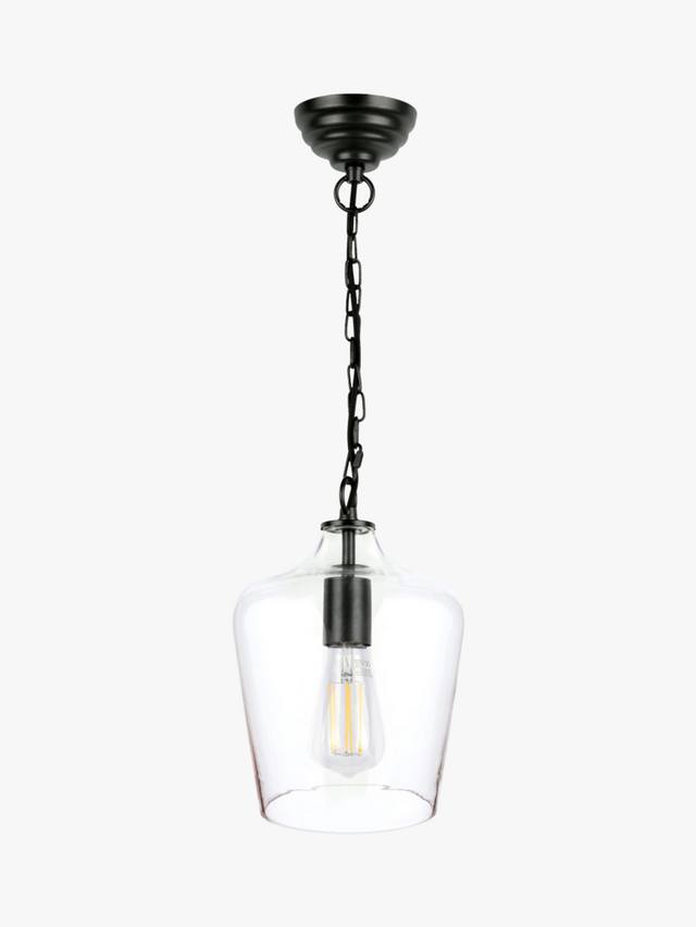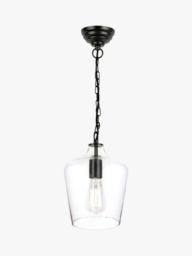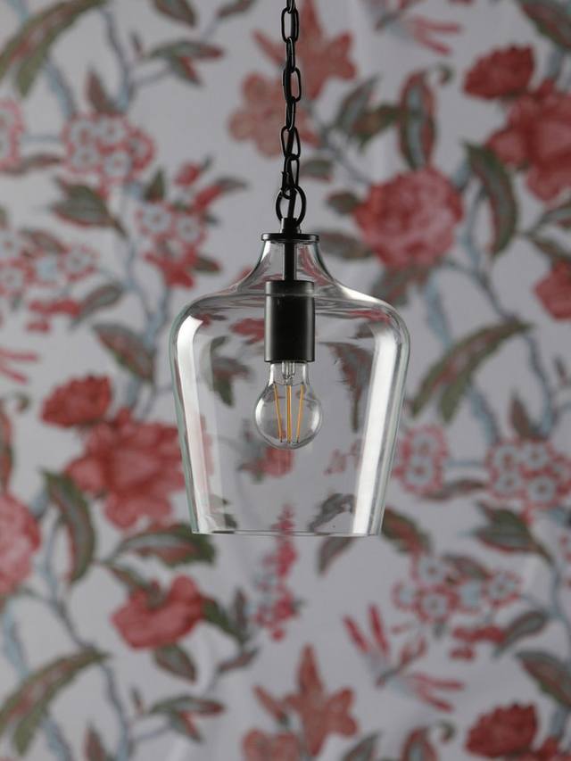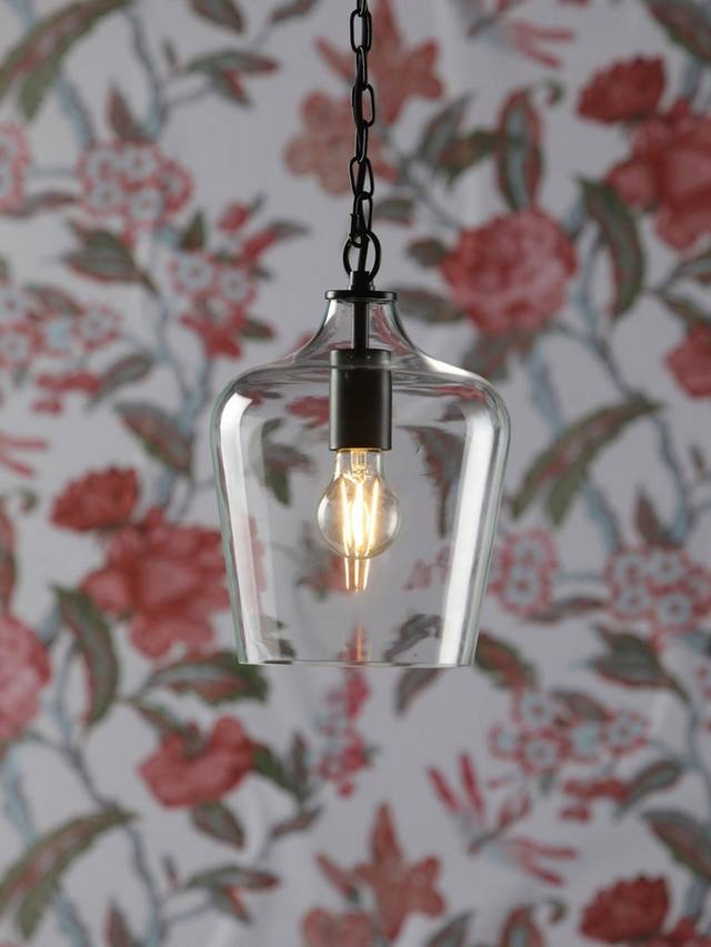 Потолочный светильник Ockley от Laura Ashley — это современная версия светильника середины века. Этот простой, но изысканный подвесной светильник в форме прозрачного стеклянного флакона с металлическими деталями легко впишется в интерьер вашей кухни, столовой или прихожей.