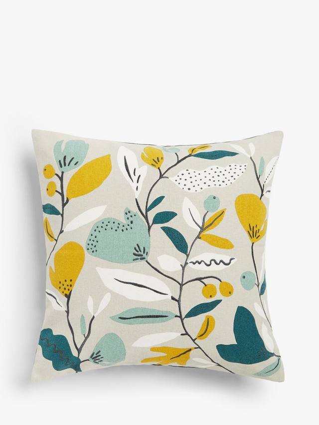 Добавьте летний всплеск цвета на свой диван с этим полуабстрактным принтом с ягодами и цветами.