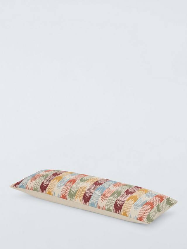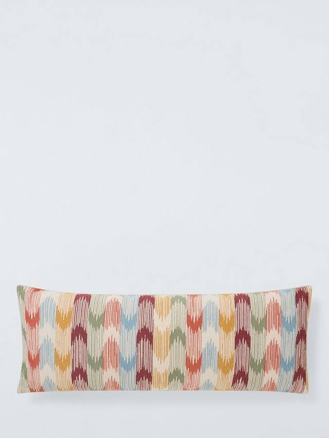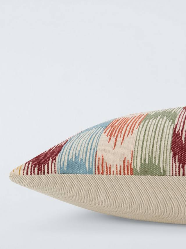 Эта красочная подушка с плетением в стиле икат станет идеальным дополнением к простому дивану или креслу.