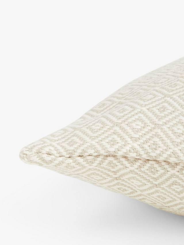 Эта привлекательная подушка соткана со сложным ромбовидным узором.