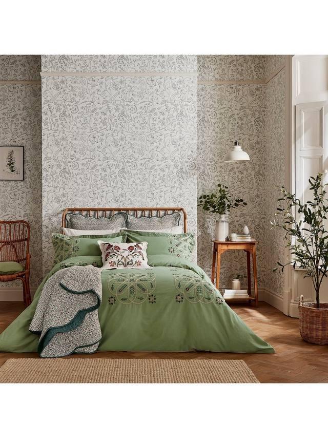 Вышитые розы с фестончатым краем и простой изнанкой. Нежный и романтичный, он добавит визуального интереса и тепла в любую спальню.
