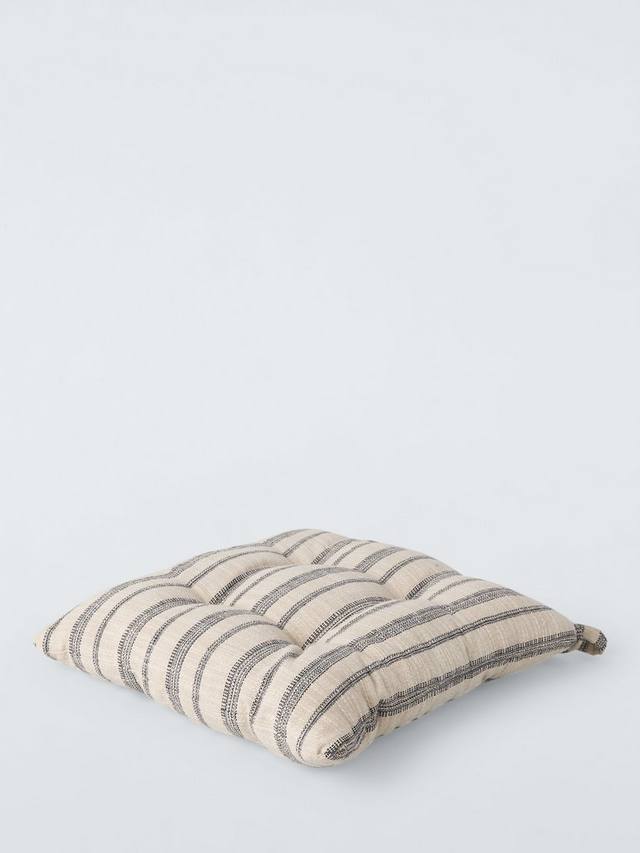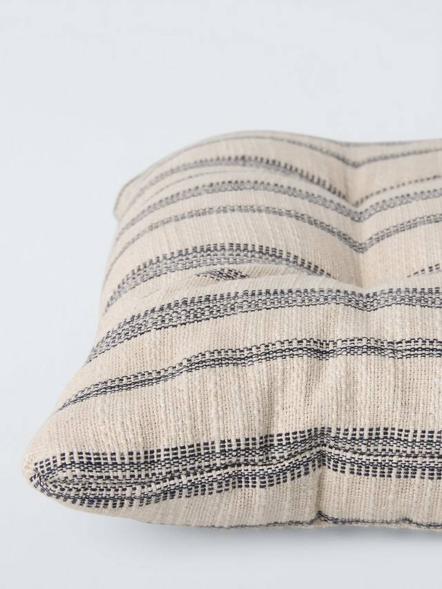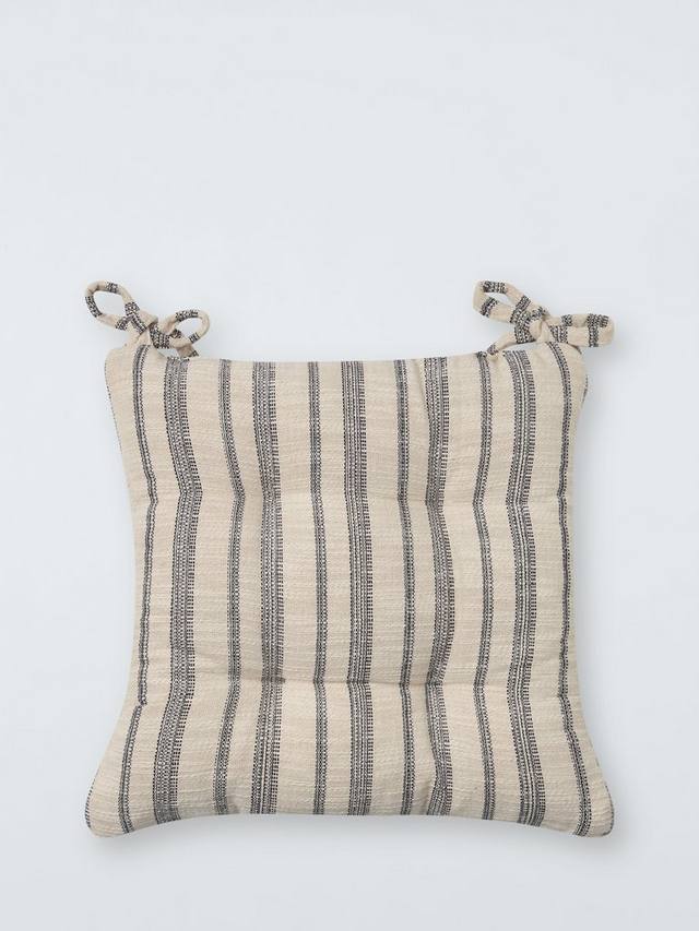 Подушка для сиденья в полоску с защипами, удобным полиэстеровым наполнителем и хлопковыми завязками.