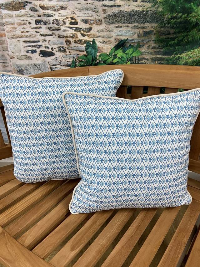 Добавьте узор и цвет к вашей уличной мебели с помощью этой пары уличных декоративных подушек Laura Ashley.