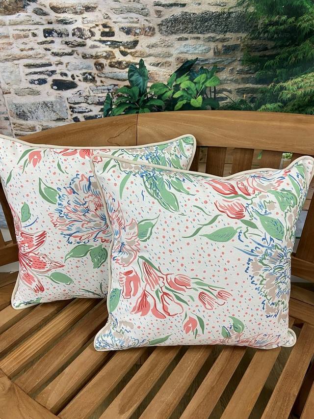 Добавьте узор и цвет к вашей уличной мебели с помощью этой пары уличных декоративных подушек Laura Ashley.