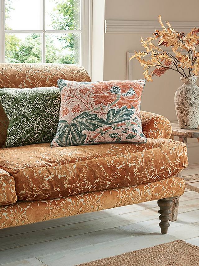 Эта двусторонняя подушка, окрашенная в насыщенные темно-синие и нежно-розовые оттенки, украшена очаровательным узором Клевер на обратной стороне, разработанным протеже Морриса, Джоном Генри Дирлом, и окрашенным в соответствующую палитру оттенков марены розовой и темно-синей.