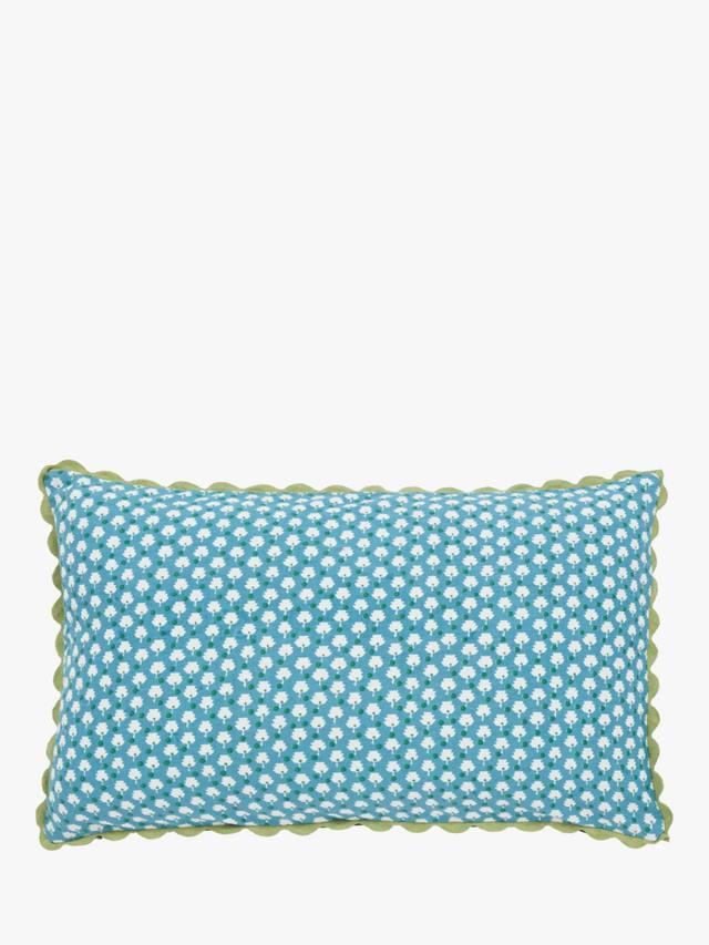 Эта прямоугольная подушка для кровати украшена изящной отделкой в виде пинты и фестончатого узора.