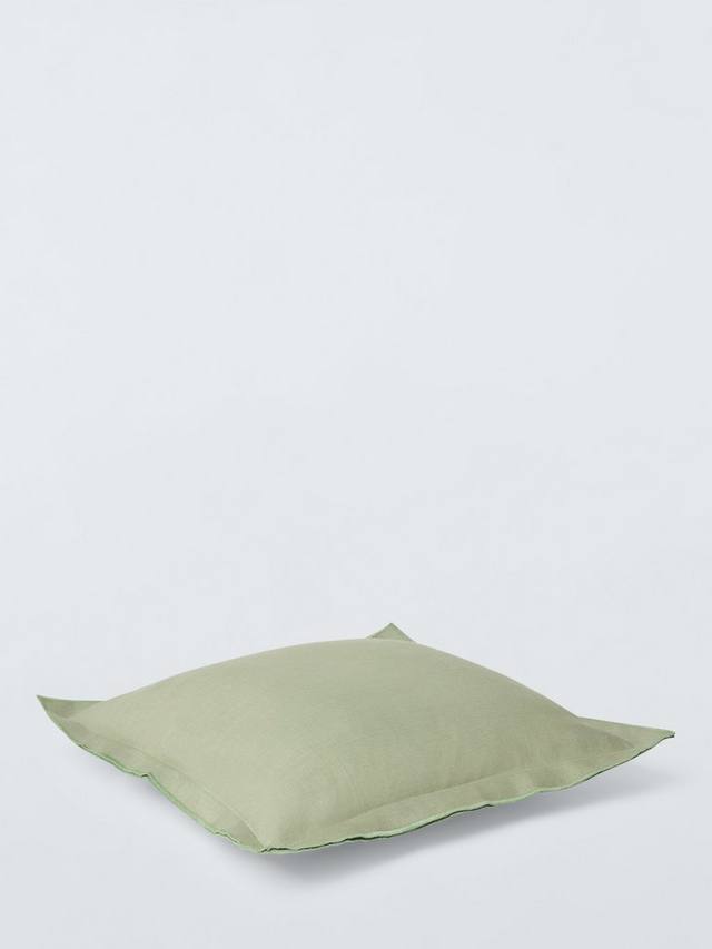 Эта подушка в стиле мешковины, сотканная из чистого льна, имеет оксфордский край, отделанный прошитой окантовкой.