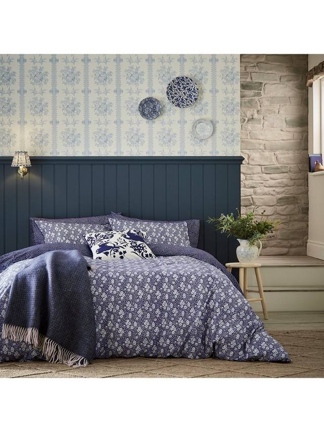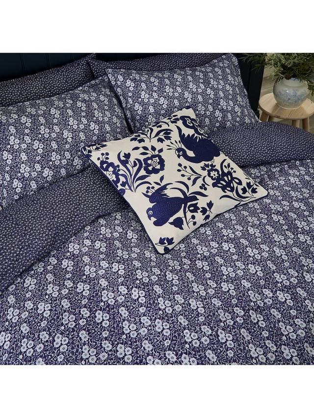 Фактурная хлопковая подушка с вышитым цветочным узором и изображением птиц.