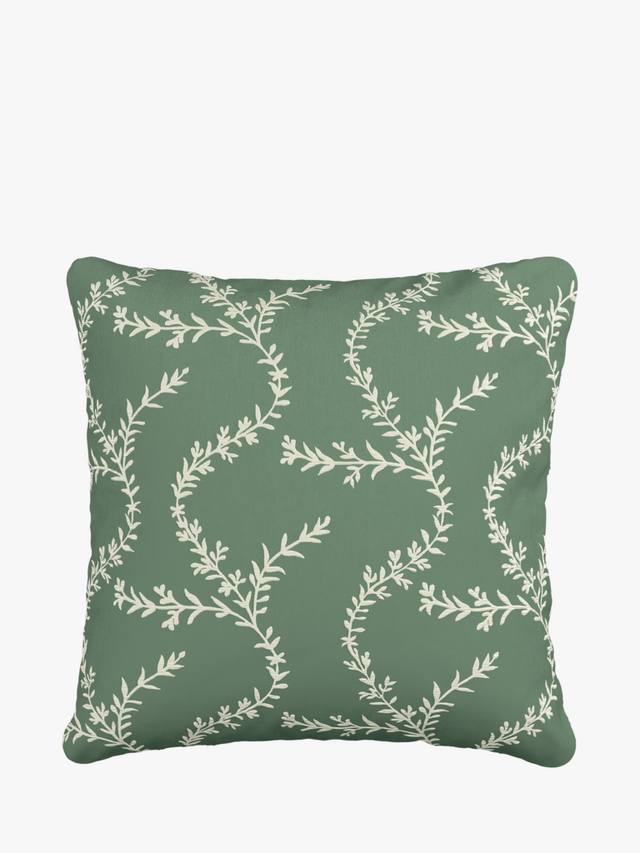 Узор этой подушки, изображающий свисающие листья и ветки, вдохновлён отрезом вышитого муслина (чиканкари) из коллекции Азия Музея Виктории и Альберта. Скорее всего, он был изготовлен в Дакке, Бангладеш, примерно в 1855–1879 годах. Напечатан на мягком хлопковом бархате.