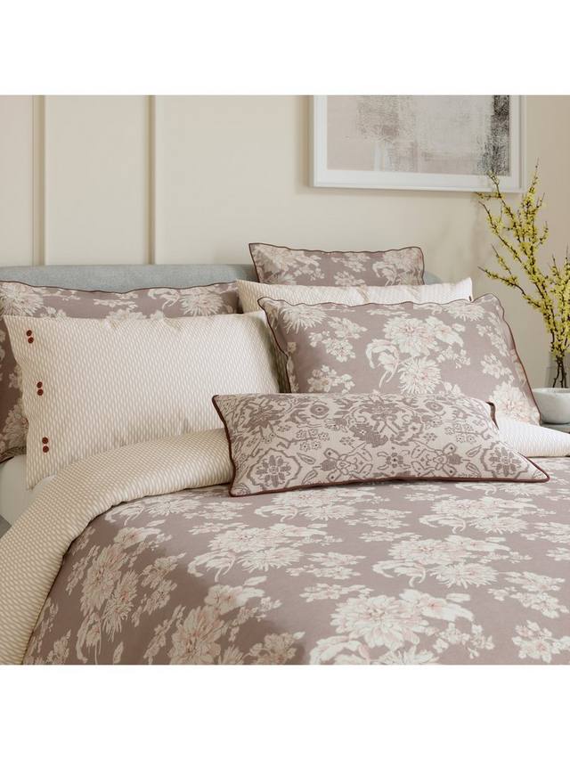 Эта подушка украшена изысканным цветочным узором в нежных приглушенных тонах с современным геометрическим рисунком на обратной стороне. Изготовлена из плотного хлопкового перкаля.
