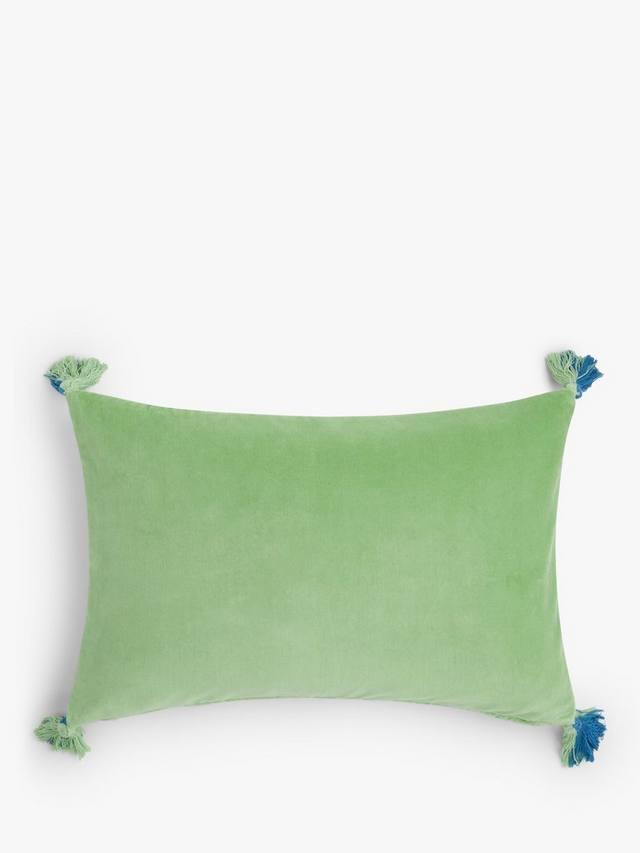 Kuva — это привлекательная подушка-валик с машинной вышивкой на мягком бархатном фоне. Она дополнена мягкими кисточками по углам.