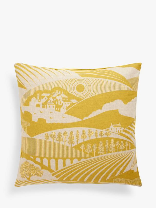 Этот дизайн от Mini Moderns представляет собой холмистые пустоши и долины, перемежаемые фермерскими домами и рядами деревьев.