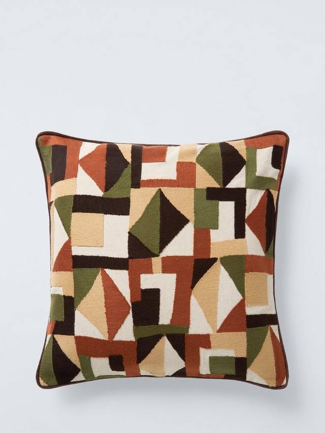 Красочная подушка с геометрическим узором и динамичным дизайном.