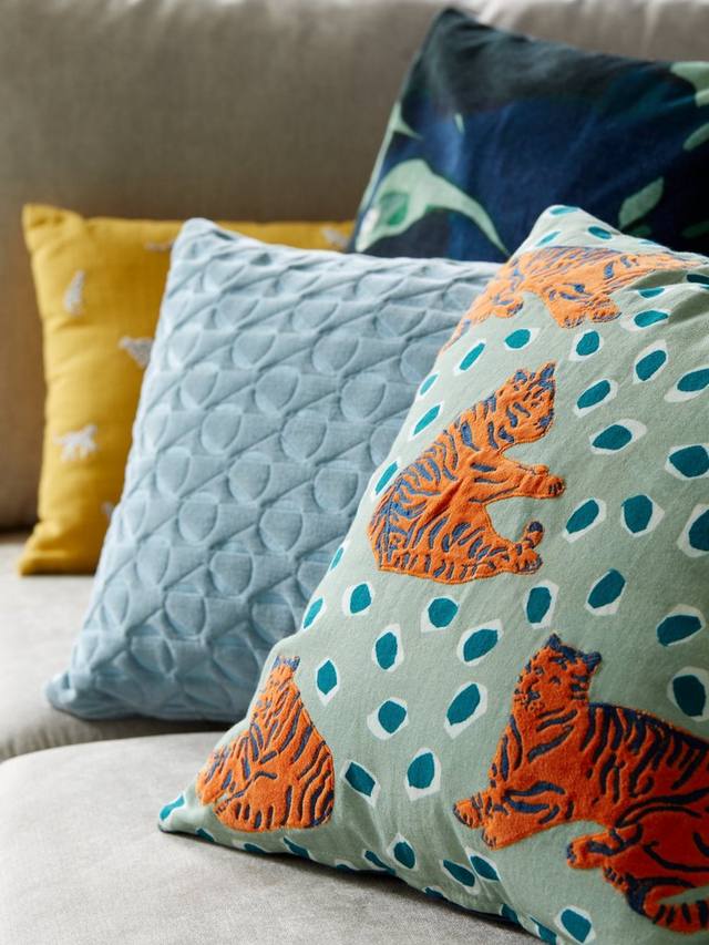 Цифровая печать, вышивка и аппликация объединились, чтобы создать эту современную и необычную подушку — простой способ придать характер и цвет вашему дивану или кровати.