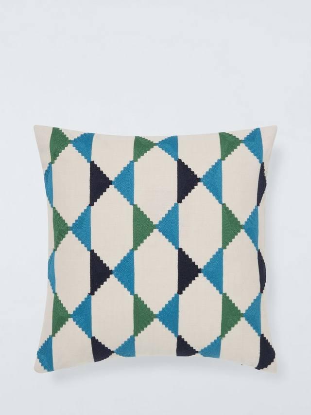 Этот модный геометрический узор соткан из цветных треугольных стеблей на естественном фоне. Обратная сторона гладкая.