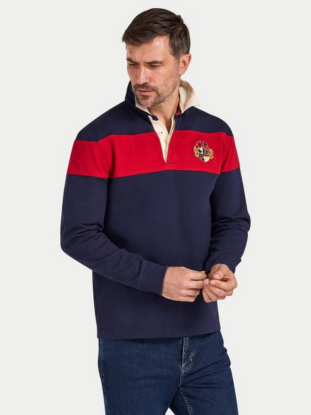 Эта мужская регбийная рубашка выполнена из 100% хлопка и имеет классический классический крой. Нагрудная вставка с вышитым гербом, напоминающим номер Фила Викери, под которым он выиграл чемпионат мира по регби, придаёт ей уникальный вид.