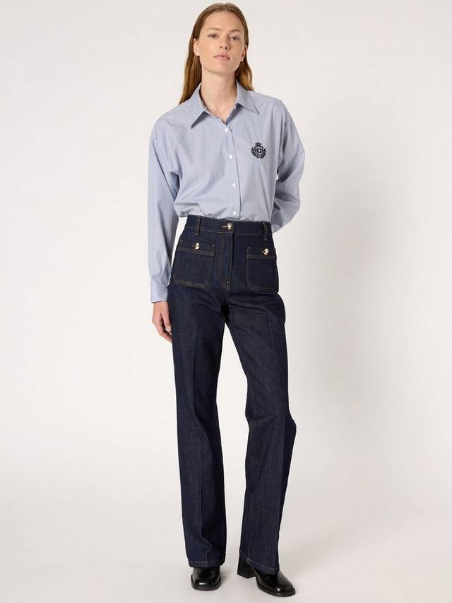 Блузка Gerard Darel добавит индивидуальности вашему дню благодаря строгому воротнику, вышитым деталям и элегантным полоскам. Изготовленная из мягкого, дышащего хлопка, она отличается игривыми штрихами, создавая запоминающийся образ.