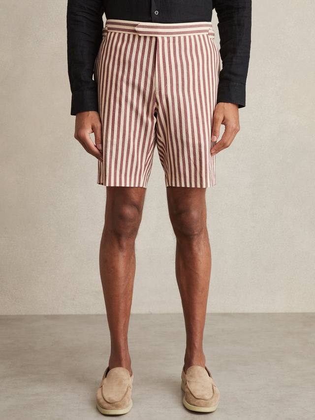Эти шорты от Reiss с классическим полосатым узором изготовлены из смеси хлопка, что обеспечивает мягкость и воздухопроницаемость. Предлагая идеальное сочетание непринужденного и изысканного стиля, они послужат изысканным дополнением к футболкам и трикотажным изделиям.