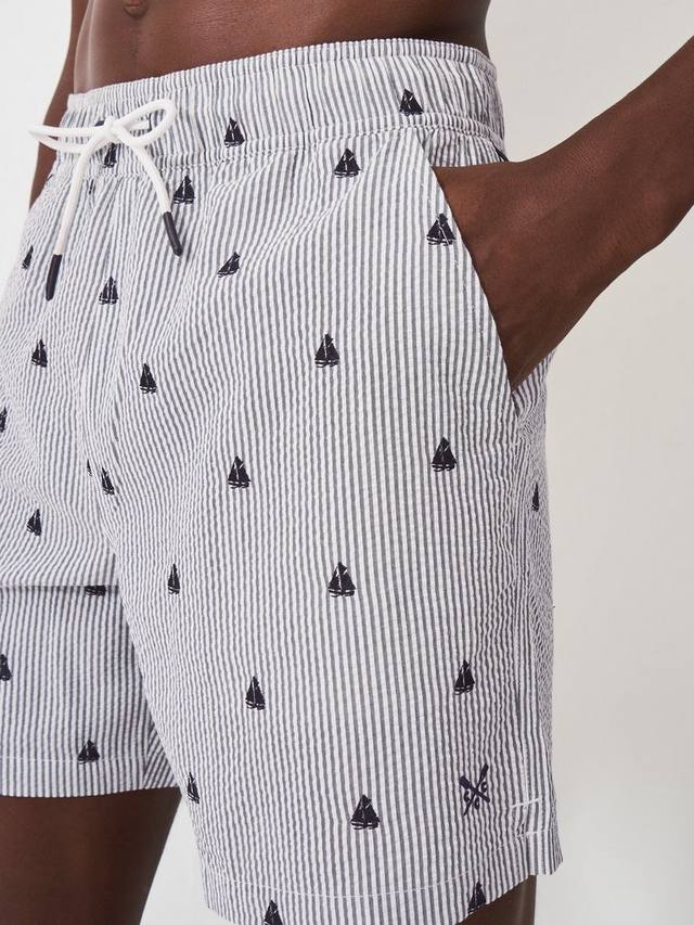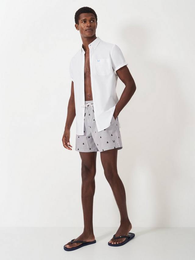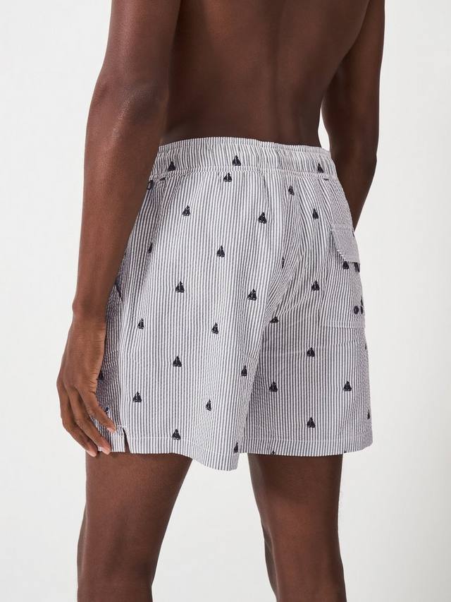 Эти зелёные плавки с принтом заслуживают места в вашем летнем гардеробе. Они украшены вышивкой с изображением лодок и имеют эластичный пояс на шнурке, что делает их стильными и практичными. Сочетайте с классической однотонной футболкой и любимыми шлёпанцами. Незаменимая вещь для походов в бассейн.