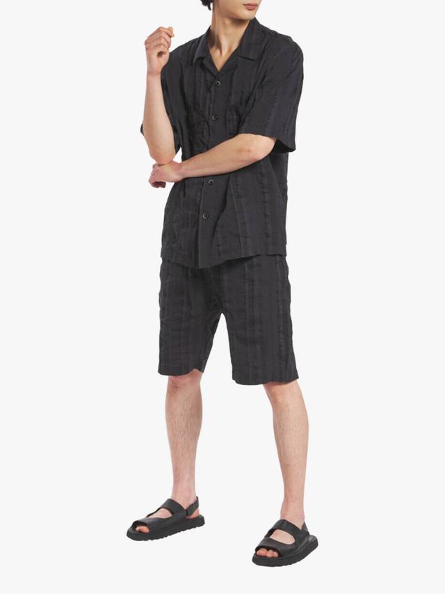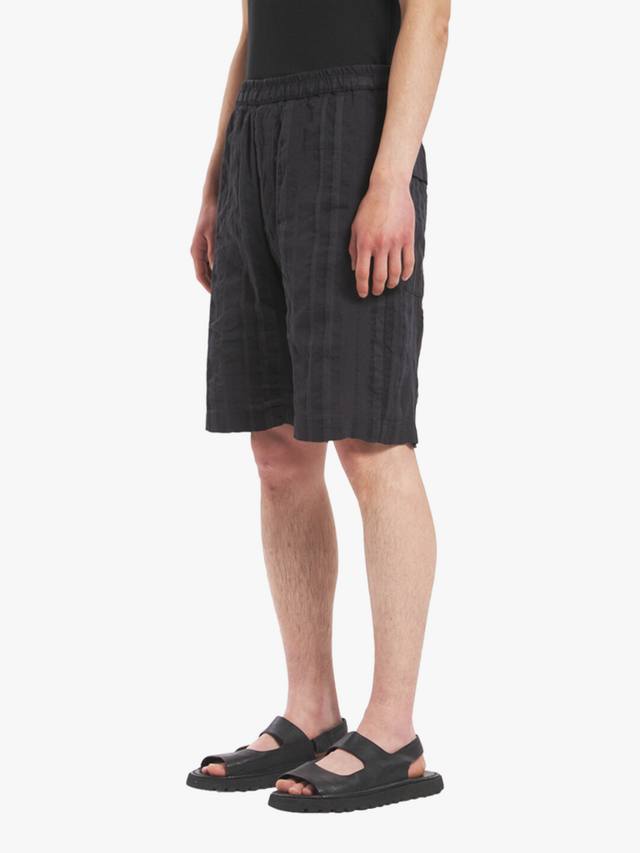 Эти шорты для бега с комфортной посадкой изготовлены из смеси льна и хлопка, стираны в готовом виде и имеют эксклюзивный узор в жатую полоску.