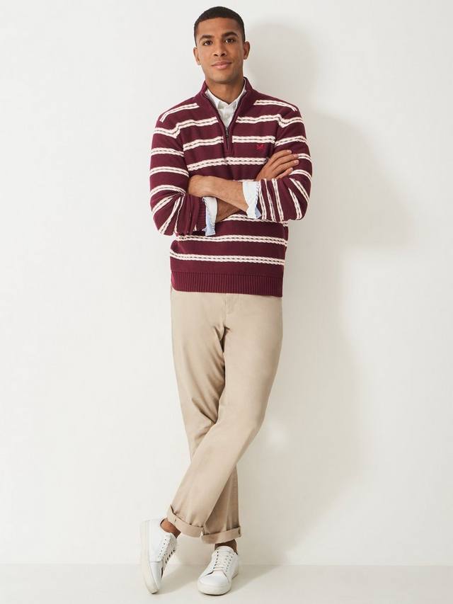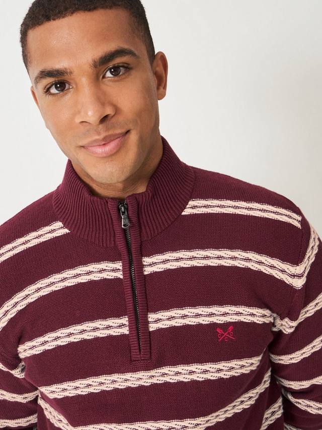 Полосатый джемпер с полузастежкой Crew Clothing, Red Wine