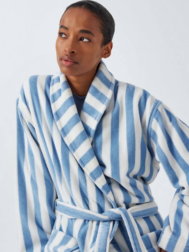 Уютнее не бывает. Этот махровый халат с полосками в винтажном стиле идеально подходит для того, чтобы накинуть его после купания.